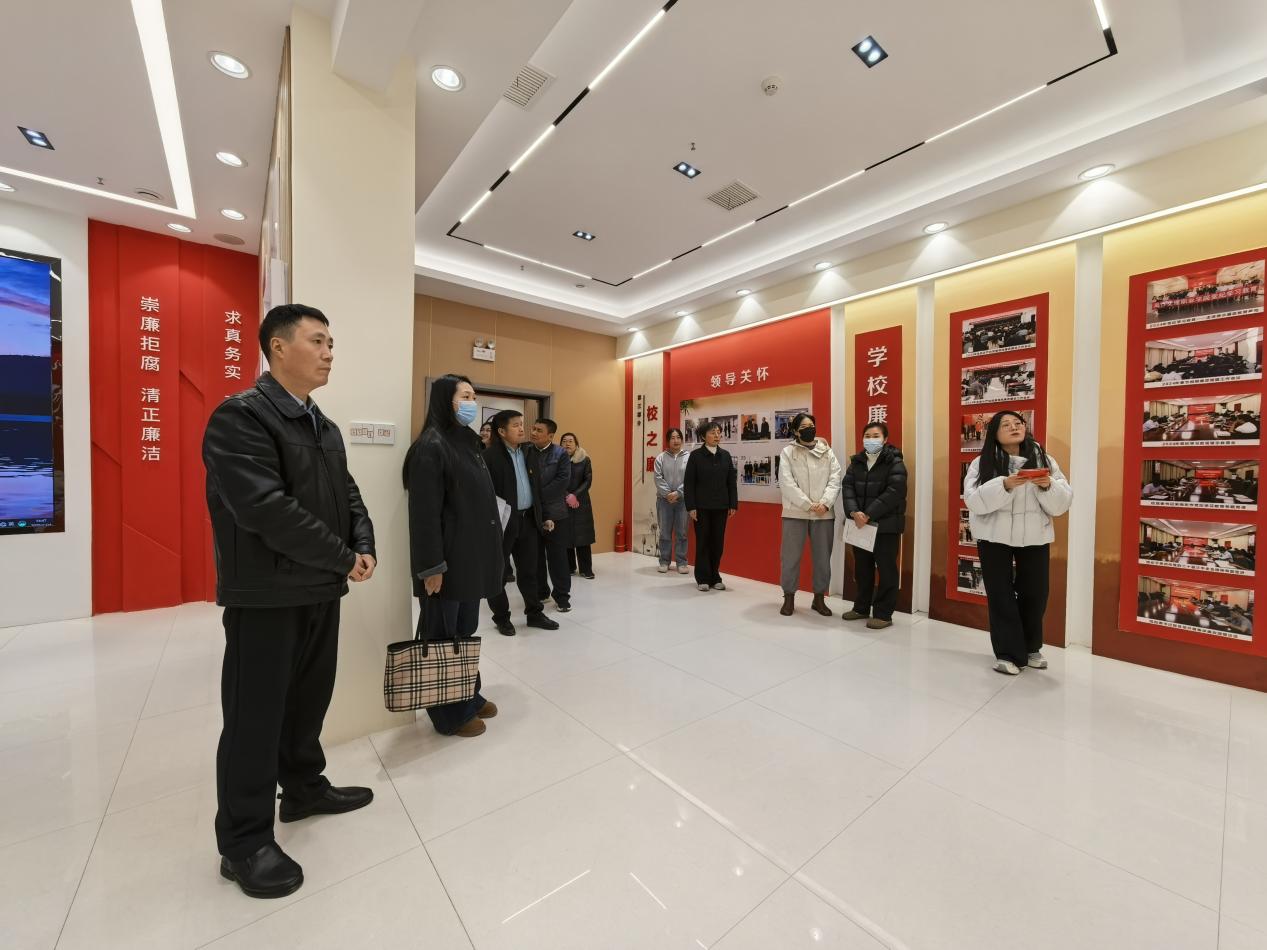 活动中,党员们依次参观了序厅、习之语、廉之言、校之廉、教之声、过之渊、心之初七大板块。从 "防微杜渐、警钟长鸣" 的序厅警示,到习近平总书记关于廉政建设的重要论述,从郑板桥 "一枝一叶总关情" 的为民情怀、吉鸿昌 "作官即不许发财" 的家风传承,到学校党风廉政建设的丰硕成果,再到教育领域贪腐案例的深刻警示,全方位、多角度的展示让党员们接受了一次深刻的思想淬炼。